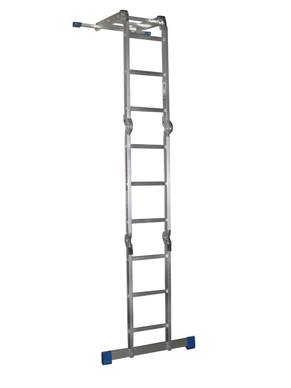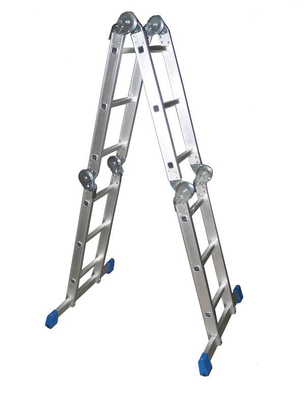 Наверное, каждый в своей жизни сталкивался с ситуацией, когда требуется забить гвоздь, просверлить отверстие или выполнить подобное действие на высоте выше человеческого роста. Каждый выходил из ситуации по своему, кто то использовал подручные предметы такие как: стул, табурет и т.п.; кто то, более подготовленный, использовал для этих целей специальное оборудование, например, стремянку. В этой статье я хочу предложить достойную альтернативу всем этим способам - лестницу трансформер. Это универсальное оборудование многоцелевого назначения. Лестница трансформер состоит из нескольких секций (чаще всего из четырех) которые свободно вращаются вокруг оси крепления и могут быть жестко зафиксированы в определенных положениях. Благодаря этому лестница может принимать различные формы и использоваться для широкого спектра работ, как любителями, так и профессионалами. А так же в сложенном положении очень компактна и может поместиться в багажник небольшого легкового автомобиля.